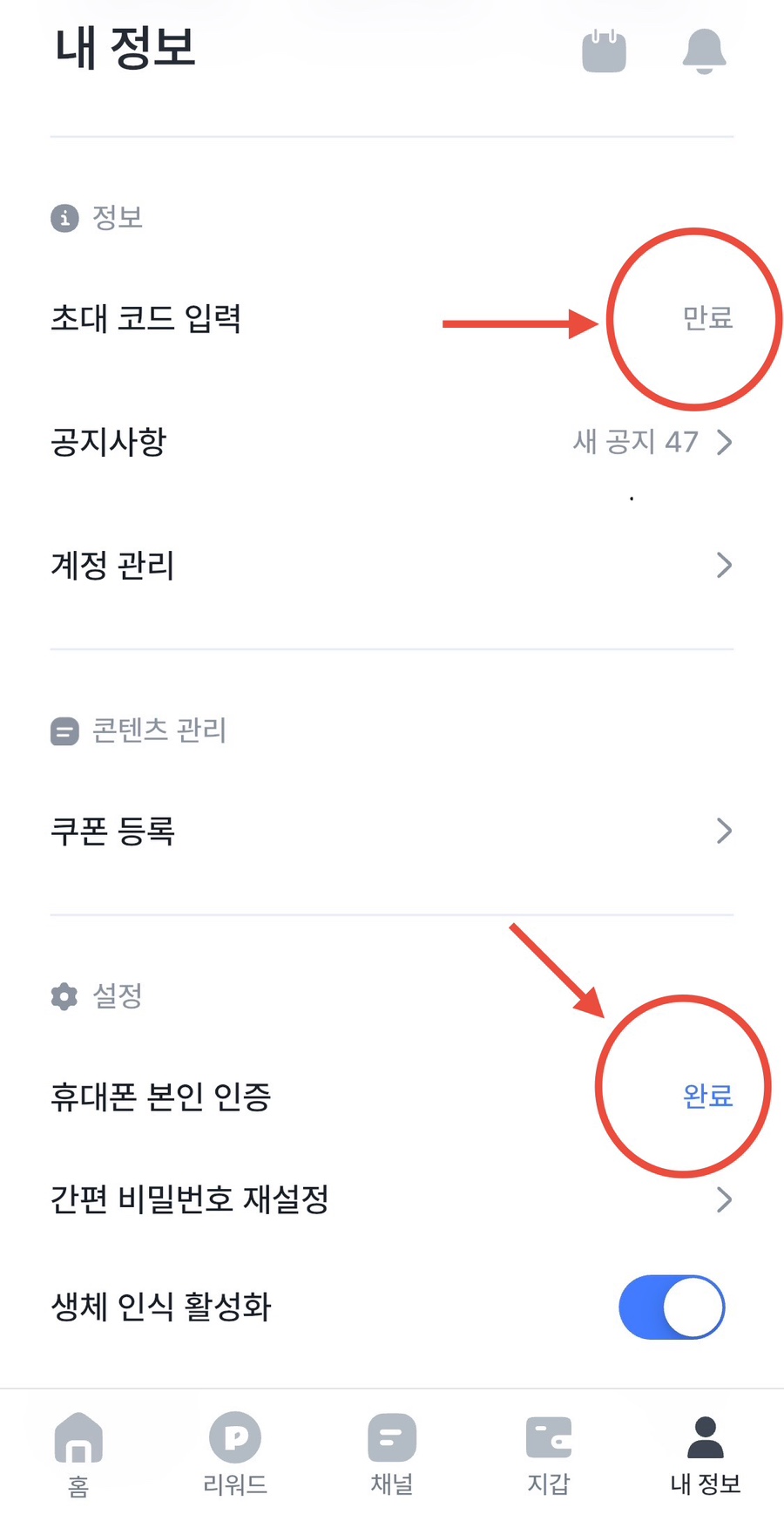 • 내 정보 > 초대 코드 입력 및 PASS 앱 본인 인증 시 1,000 B 포인트 획득