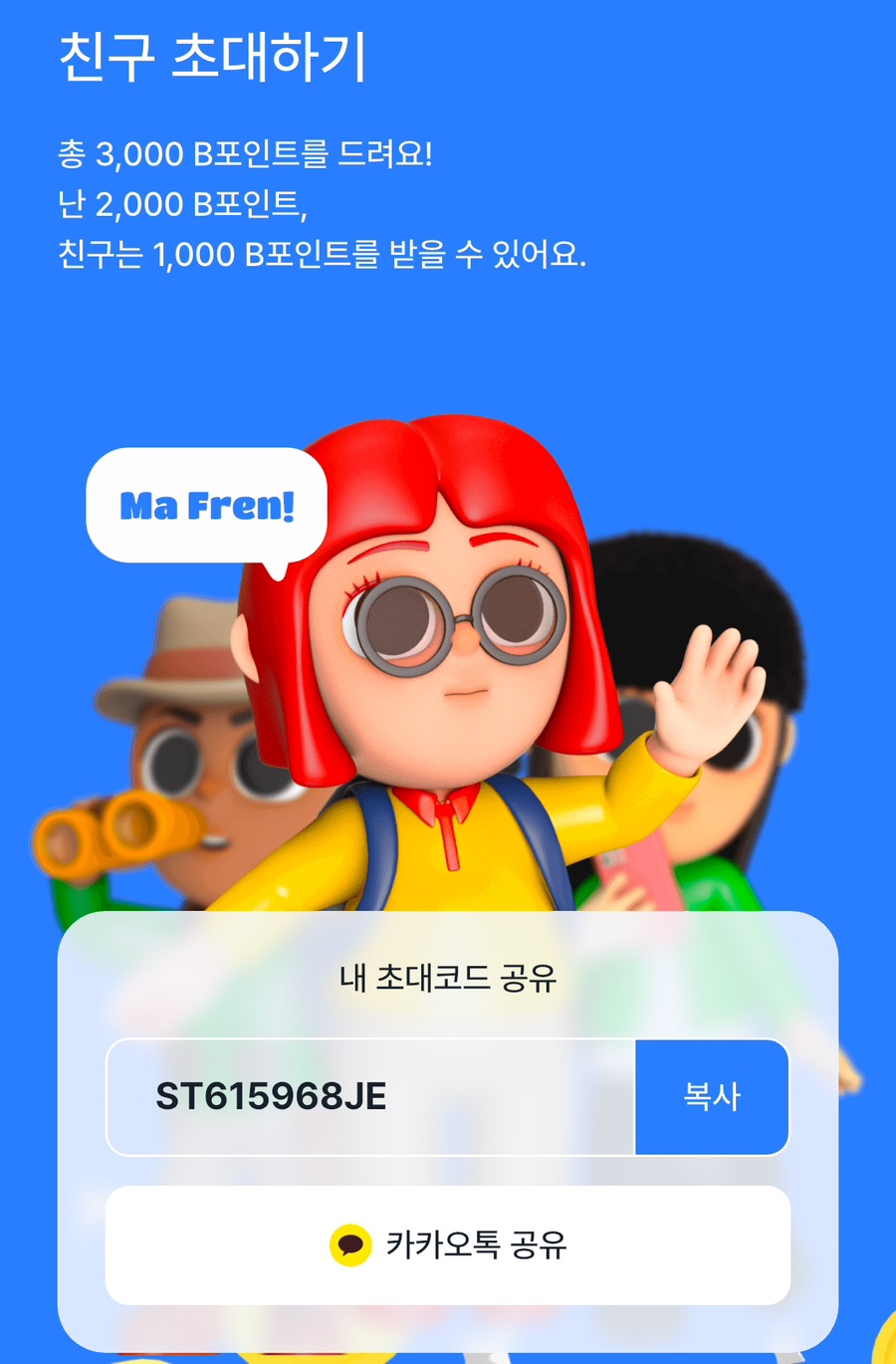 • 초대 코드 : ST615968JE