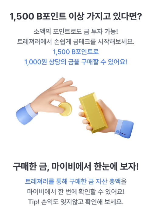 • 마이비 포인트 1,500 부터 금 투자 가능